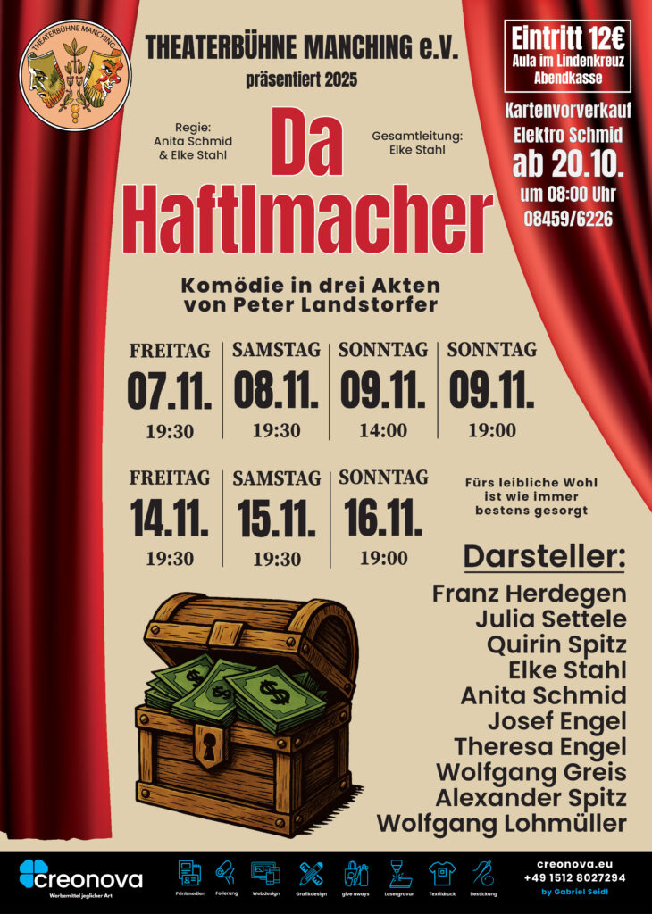 Abendkasse oder Kartenvorverkauf bei Elektro Schmid ab 20.10. um 8:00 und telefonisch unter 08459 6226